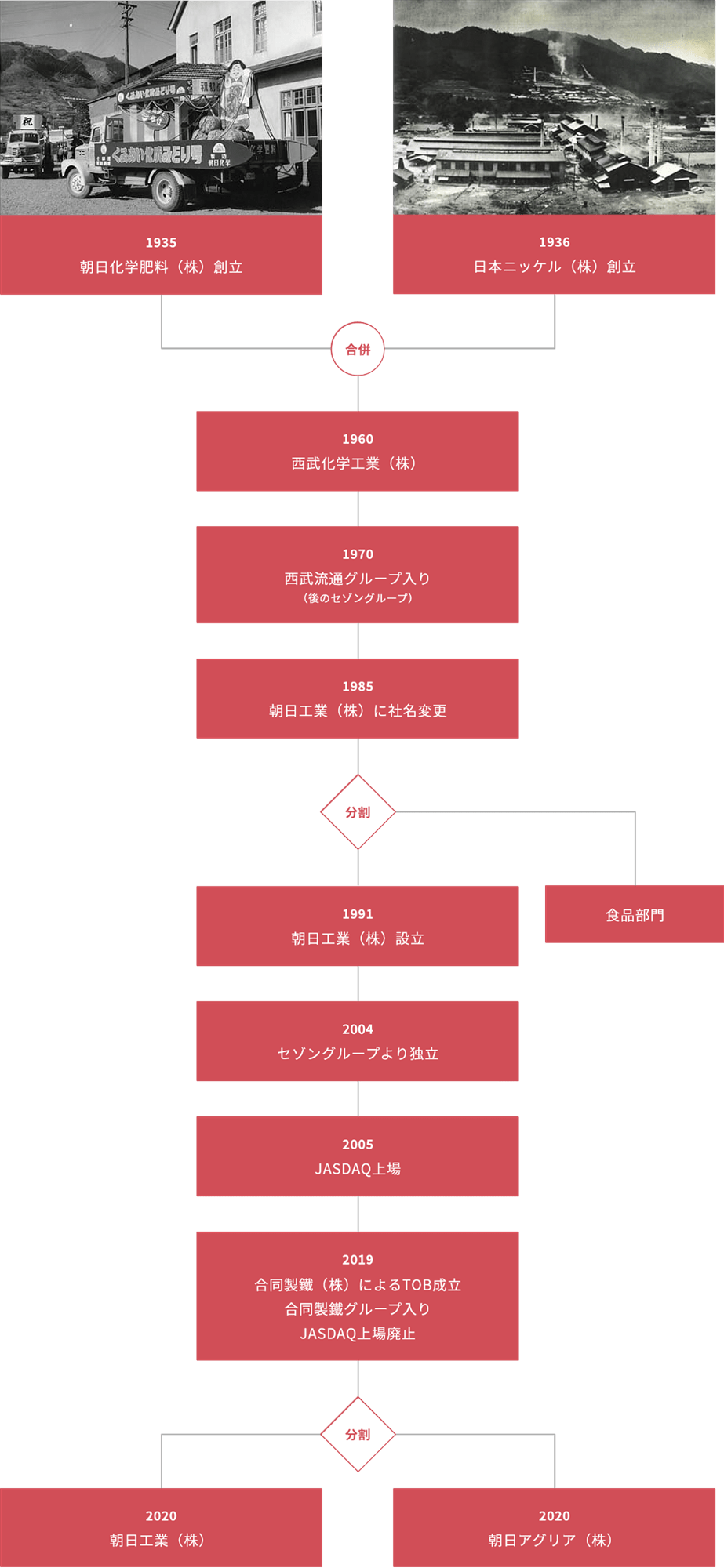 鉄鋼建設資材事業・農業資材事業を朝日工業(株)に、食品事業を朝日食品工業(株)に会社分割新しい経営体制の下、環境を強く意識した企業としてスタート